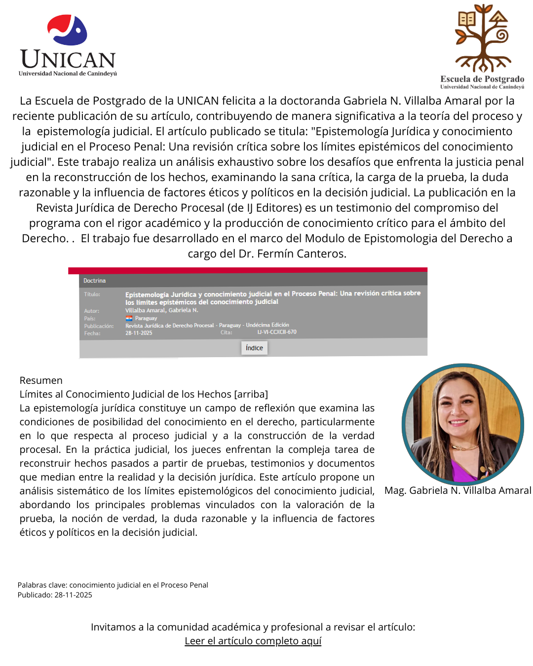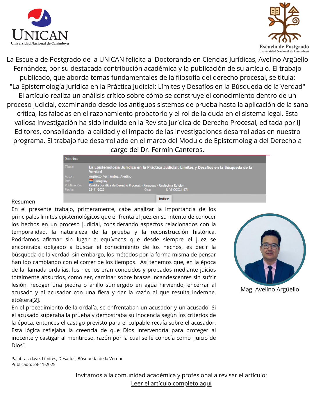 NUEVA PUBLICACIÓN DOCTORAL DE ALTA RELEVANCIA: Reflexión sobre la Verdad Judicial